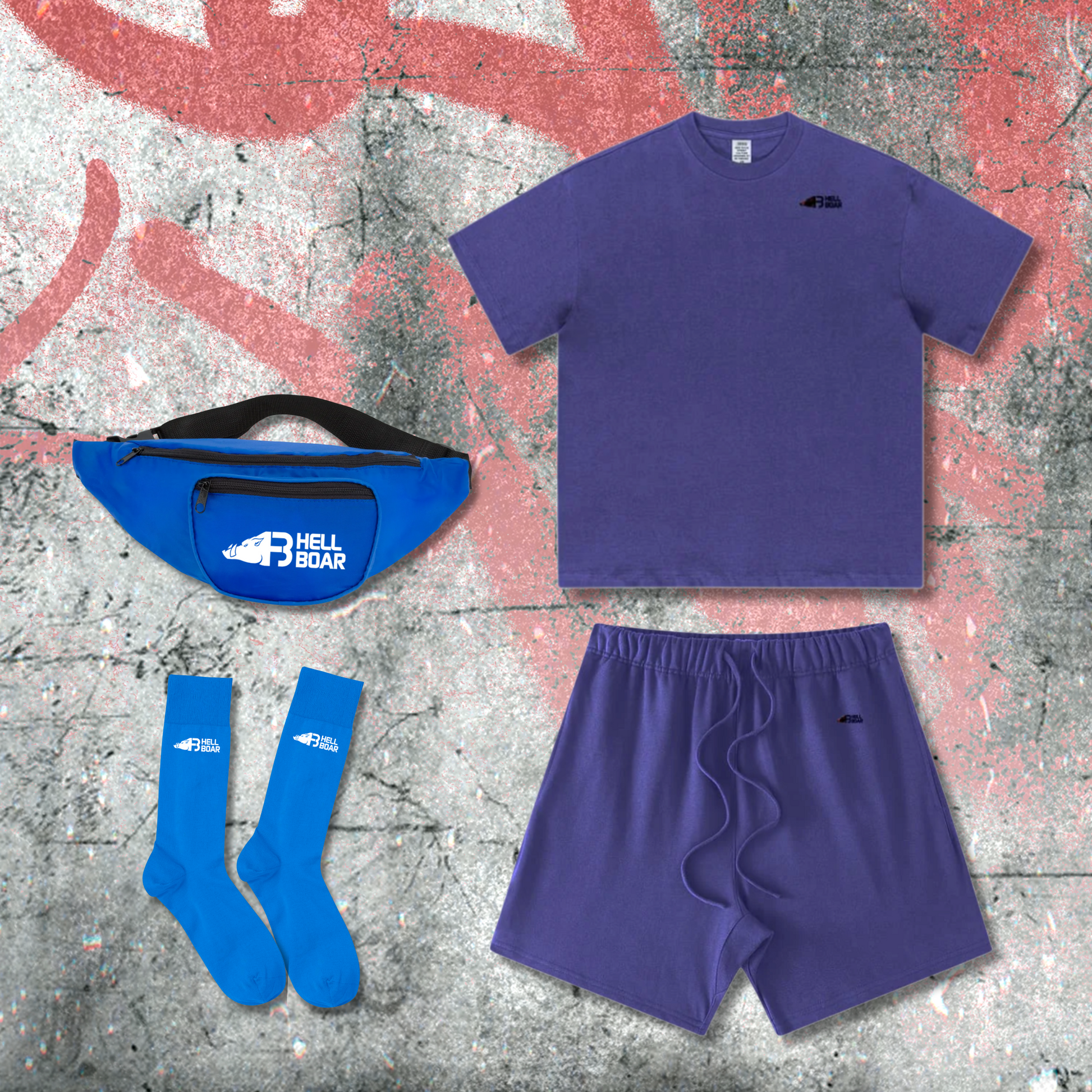 A modern combination of deep tones for a sleek and confident aesthetic. Violet meets cool blue for an effortless streetwear statement.