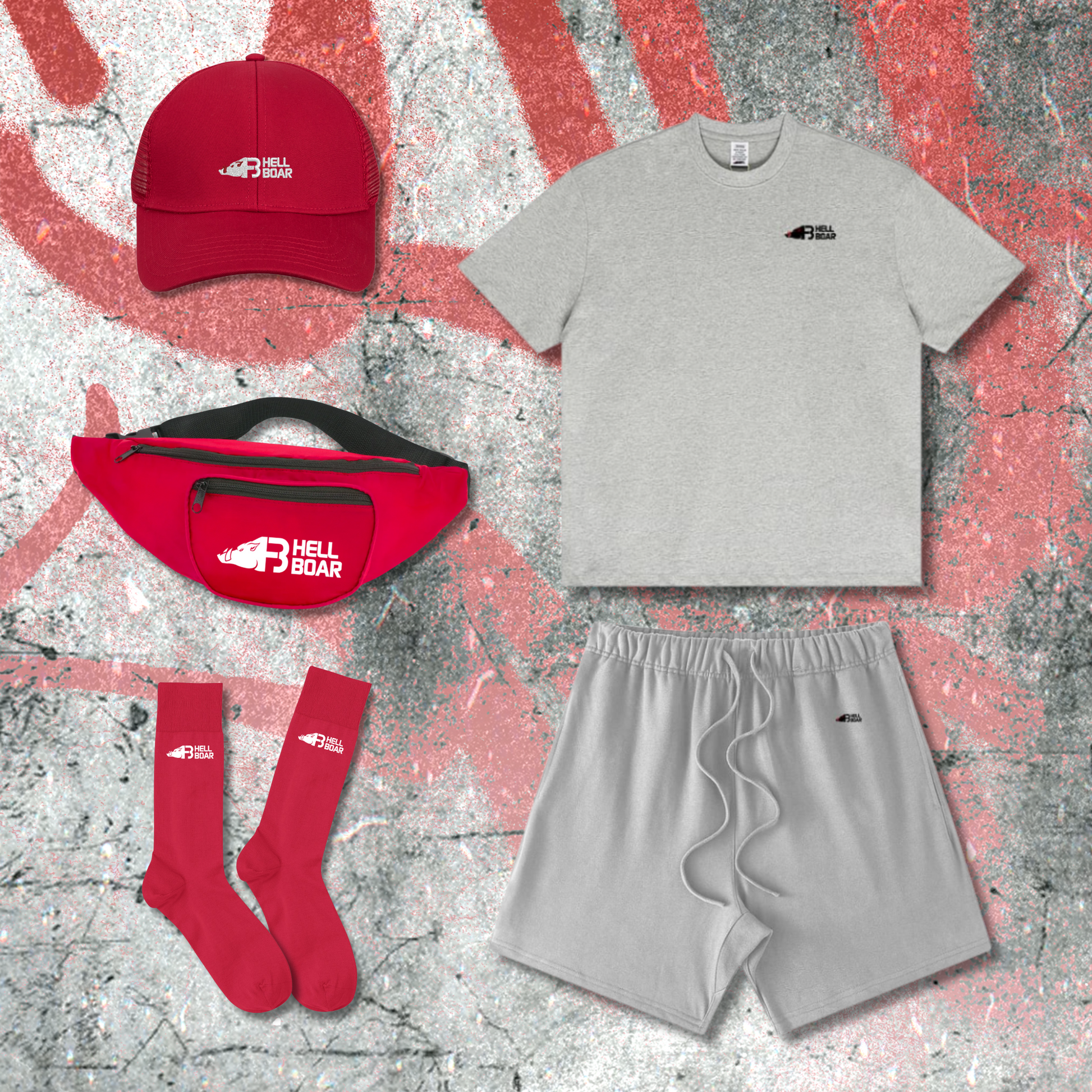 1× Red crossbody bag with Hell Boar branding;